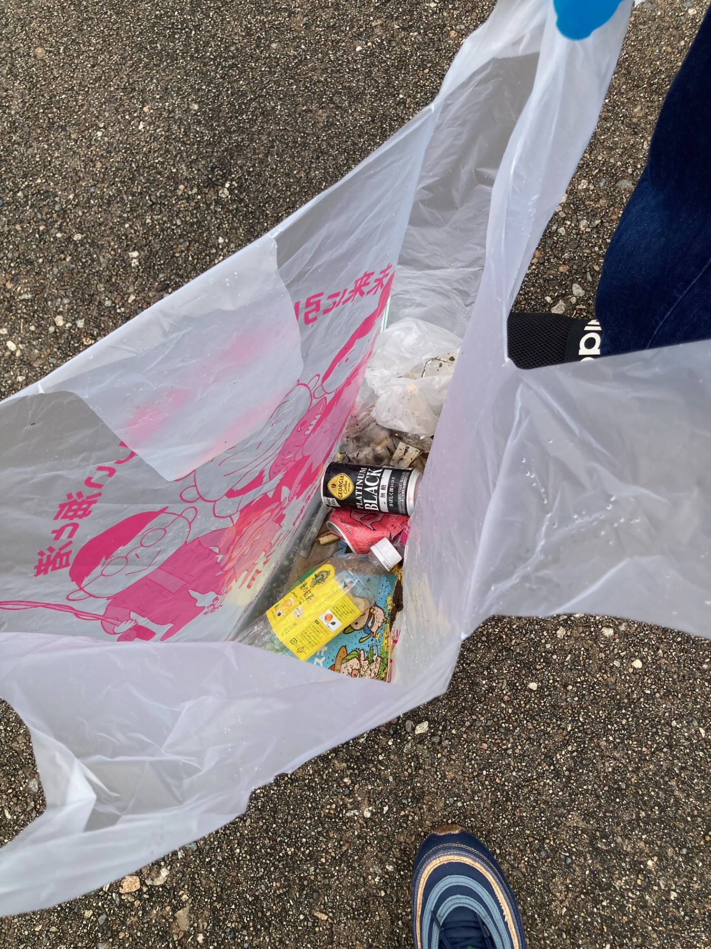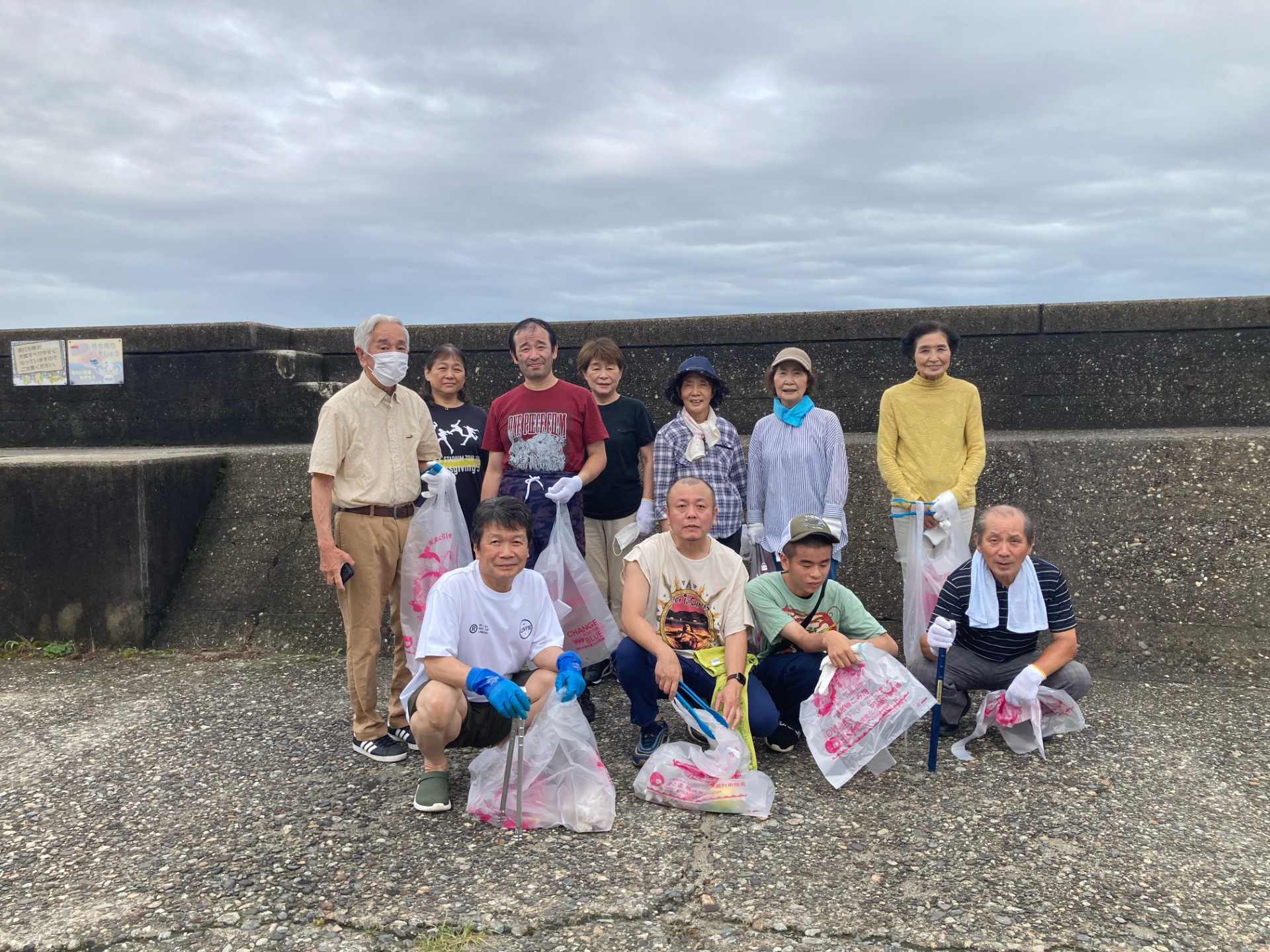 前日夜に多くの来場者があった花火大会後、道の駅なめりかわを中心に30分程度ゴミ拾いをしました。
